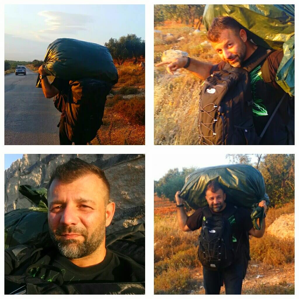 網友Diyarbekir 21圖中就是亞當進入敘利亞的樣子,他通常背上會扛著裝著玩具的大袋子,徒步往難民營前進。