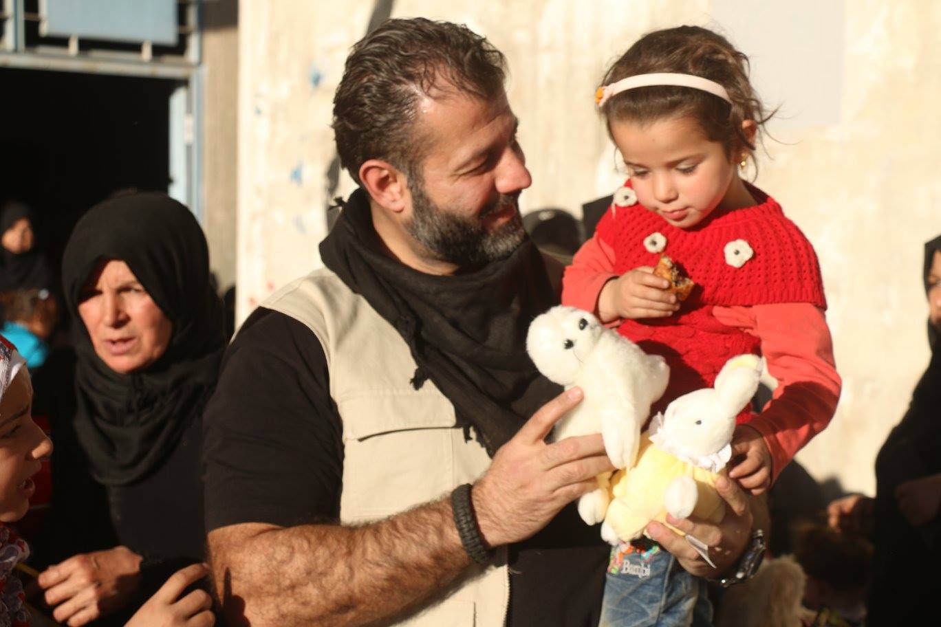 2012年,在媒體上看到家鄉慘況的他決定踏上返鄉之旅,他原本計畫帶食物還有其他救援物資進入敘利亞,但他 3歲的女兒雅思敏(Yasmeen Adham)大方地把玩具拿出來,要爸爸帶去給敘利亞的小朋友。