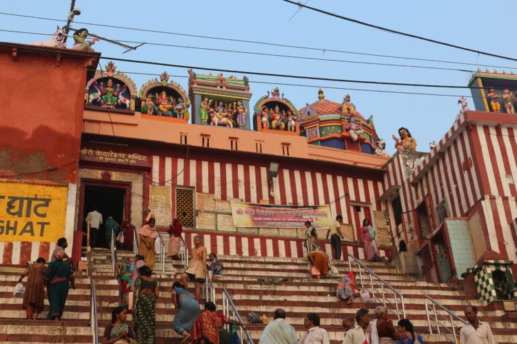 人人相信濕婆經常現身於恆河,瓦拉納西沿岸上,有大大小小87座朝聖河壇(Ghat伽特),每一個伽特,各有其名,沿線數十里,供信徒膜拜,每天有成千上萬的信徒,冥想打坐、做瑜珈、作畫、晨昏禮拜,洗衣、孩童嘻戲、祈福禱告、上游火葬昇天,下游沐浴淨身,喝聖水,不以為逆,蔚為奇觀。瓦拉納西的河壇大多數建於十八世紀的馬拉特帝國,其中Maan-Mandir Ghat、Lalita Ghat和Bachraj Ghat都是相當知名的河壇。許多河壇與傳說或神話有關,也有河壇是渡河船碼頭,而更多河壇是做為私人洗衣和曬衣埸。