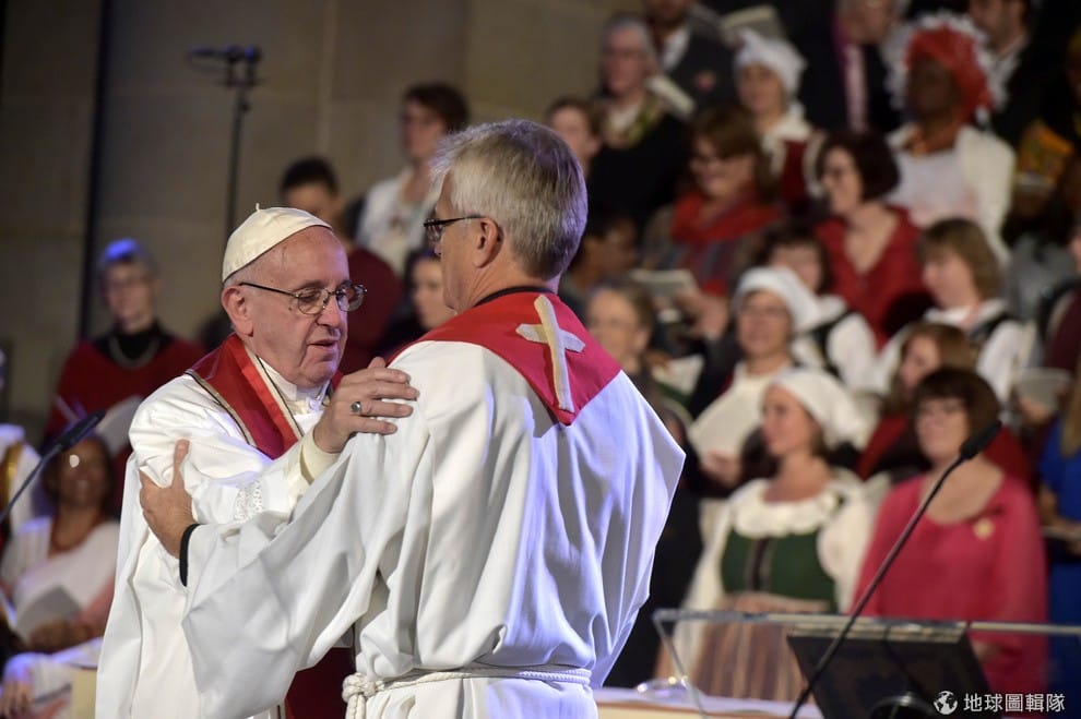 明年的 10月31日是宗教改革 500周年,世界信義會聯盟也決定從今年開始舉辦為期一年的宗教改革紀念活動,並由天主教教宗方濟各(左)與世界路德教會聯合會主席約南(右)共同主持禮拜拉開序幕,象徵新舊教派的和解。