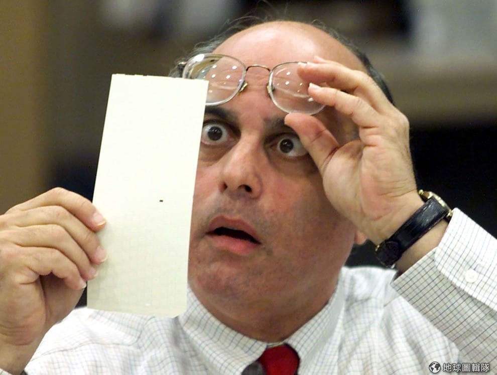 一名男子正在仔細的審視選票,這次的美國大選堪稱最受矚目的一次。