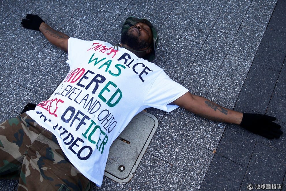 一名男子在 28號出席「黑人的命也是命」示威活動,抗議先前在北卡羅萊納州夏洛特市(Charlotte)警方槍殺黑人男子史考特(Keith Scott)的舉動。