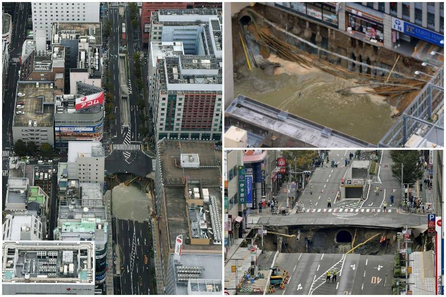 2014年10月,福岡市長三公尺的道路塌陷,所幸無人受傷。
