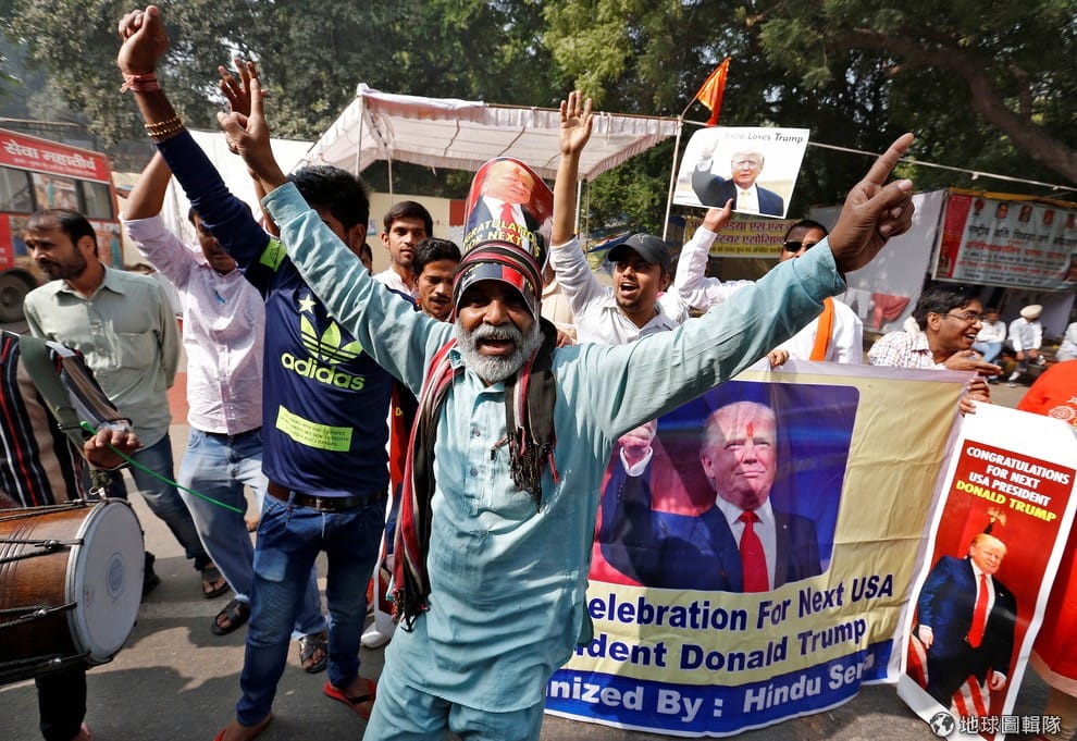 路透社在其他國家,川普的支持者也不遑多讓,印度激進右翼團體一得到川普勝選的消息便到大街上慶祝。