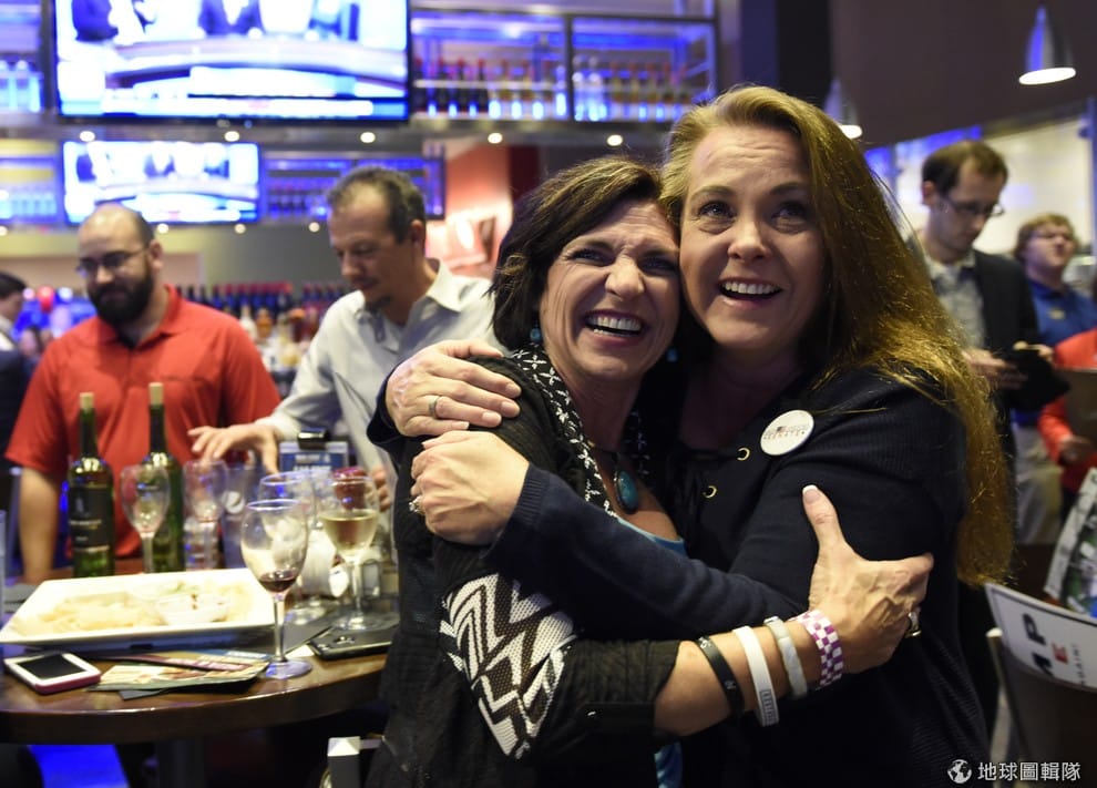 路透社在亞利桑那州共和黨的開票派對上,得知選舉結果的川普支持者歡聲雷動。
