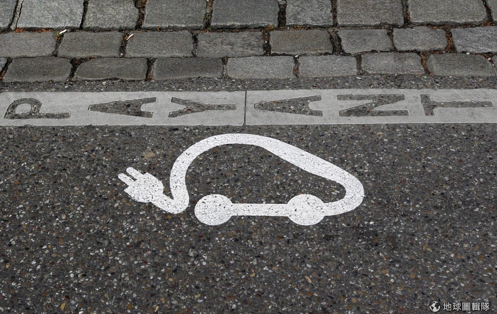 停車場內的地上畫有電動車圖示,示意著要電動車來這邊停放。