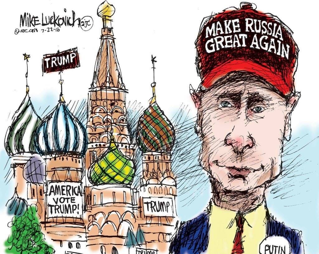 美國總準統川普的形象讓他容易被「卡通化」,成為俄國當局讓國內團結一心的「敵人」。