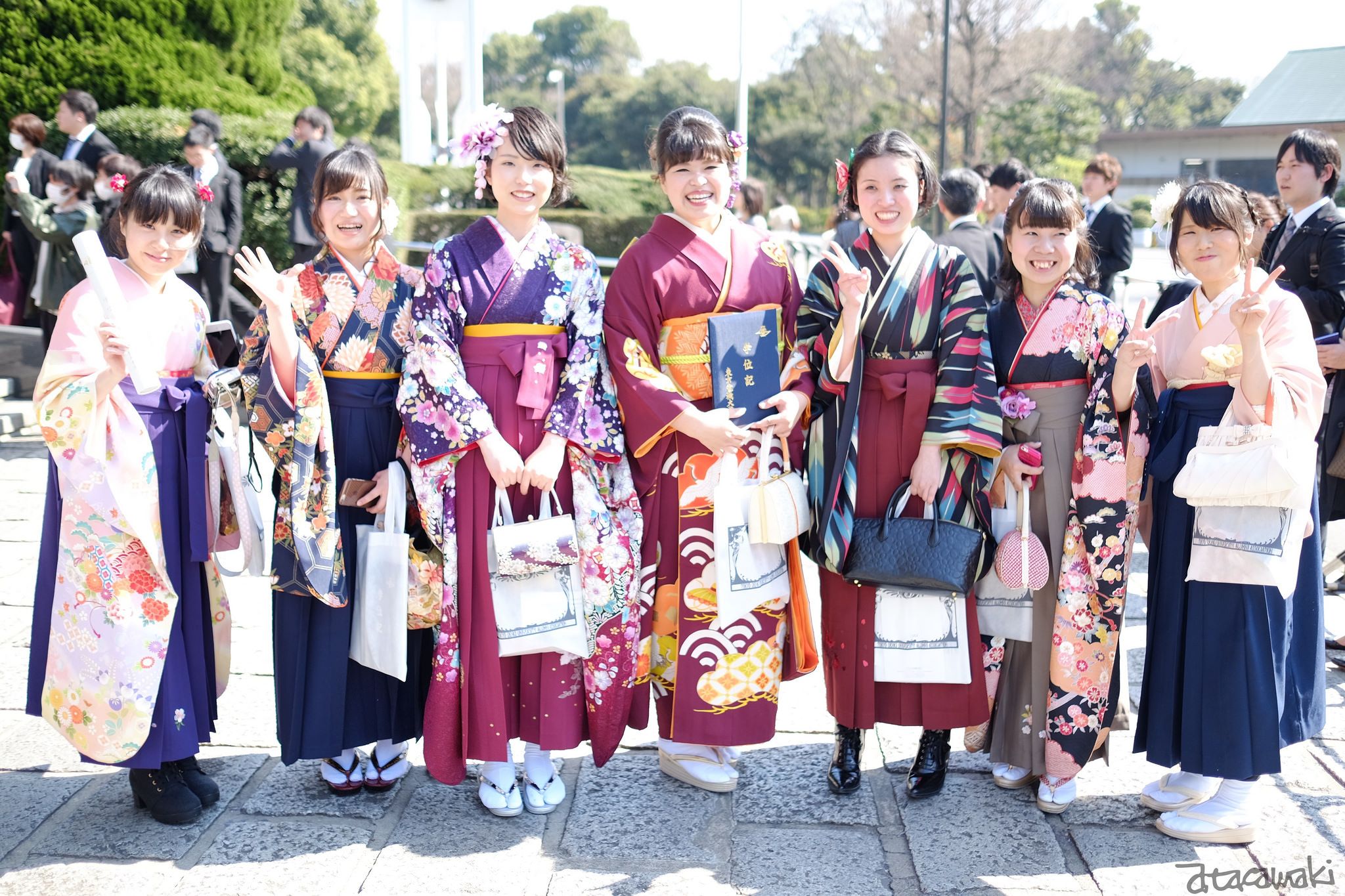 一群女大生穿著傳統日式和服參加畢業典禮。近日,東京大學為了改善校園懸殊的男女比,準備推出女學生住宿補助的政策。