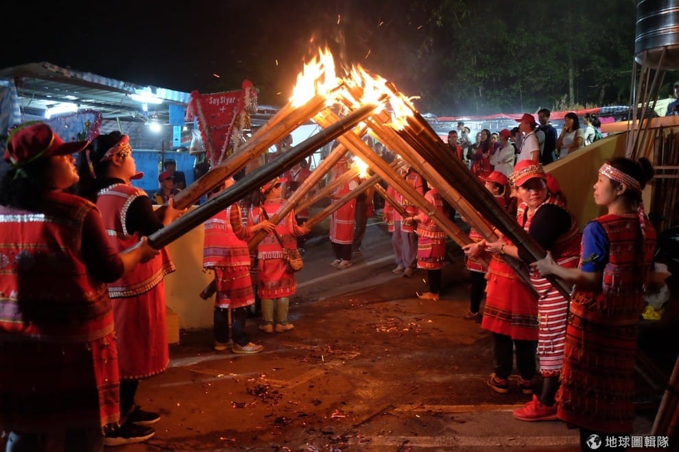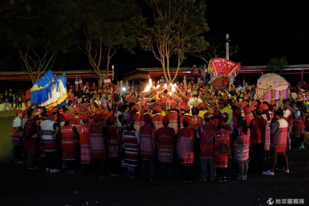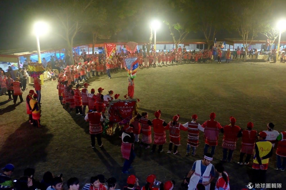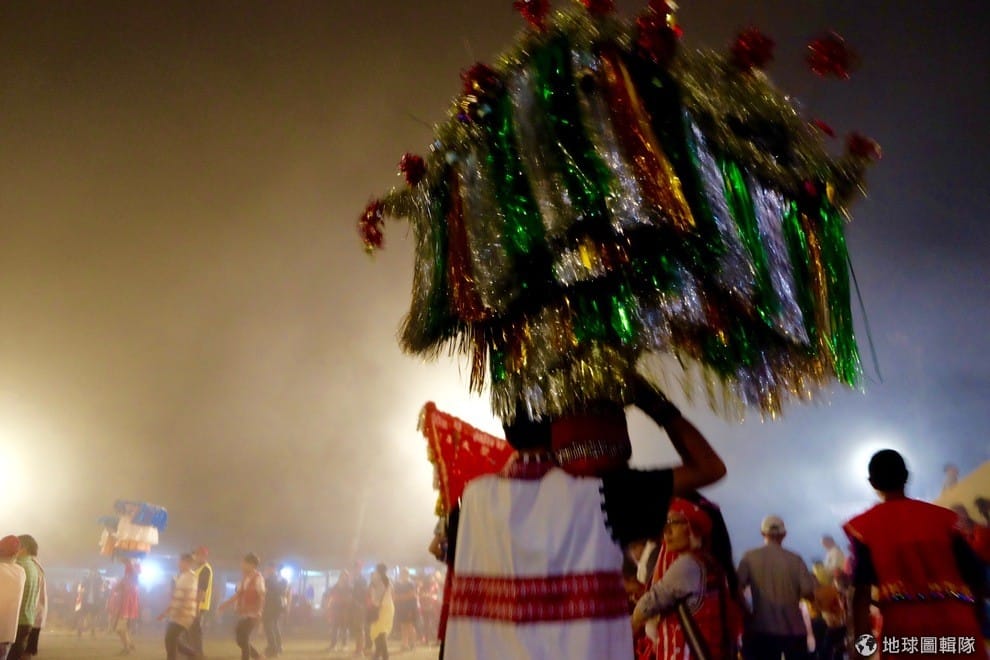 地球圖輯隊同一時間,扛肩旗的族人們也陸續進場了,這個晚上的祭典正式開始!