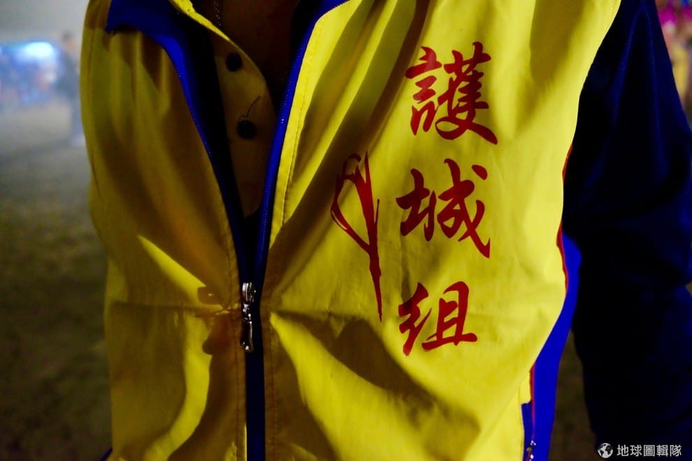 地球圖輯隊趙家人在這次的矮靈祭中擔任「護城組」的角色,主要是確保歌舞可以順利進行,時不時就會驅趕擋到隊伍的拍照人士(像泥仔),或是協助外人一起進入隊伍。所以在照片中經常可以看到「黃背心人」的蹤影。