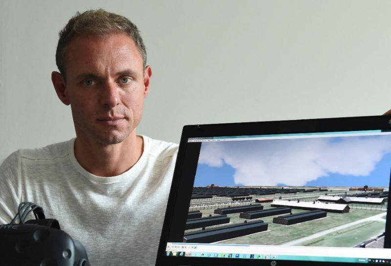 圖為今年 43歲的虛擬實境影像專家布雷克,他帶領團隊實地走訪納粹奧斯威辛集中營,成功利用虛擬實境還原犯罪現場。