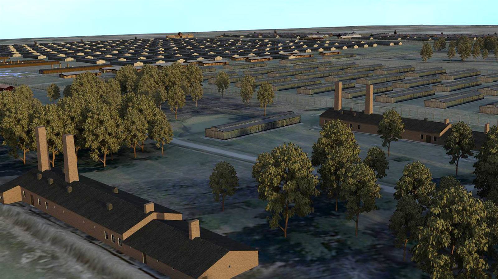 圖為納粹奧斯威辛集中營的 3D虛擬實境影像,每一棟建物的位置、高度等細節都經過反覆考證。