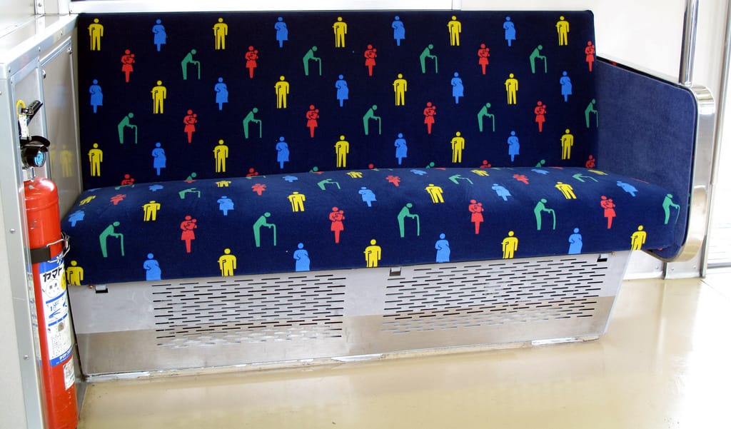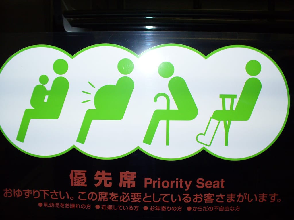 有的日本大眾交通工具上,「優先席」的座椅會有孕婦、老人、身障人士和嬰幼兒的圖案,提醒乘客該座位是「優先席」。