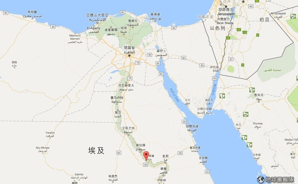 圖中紅色地標處為蘊含豐富埃及古文明的阿拜多斯城,考古團隊在這附近挖出了失落 7,000年的古城。