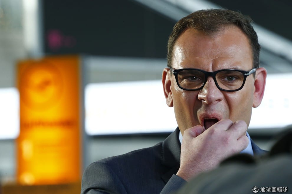 圖為漢莎航空發言人萊特克(Martin Leutke),他在周三時現身德國法蘭克福機場,向媒體說明機師罷工一事。