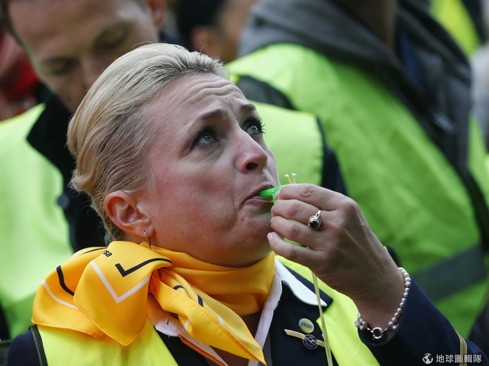 路透社2015年,漢莎航空空服員連續罷工七天,他們在法蘭克福機場抗議勞動條件不佳。