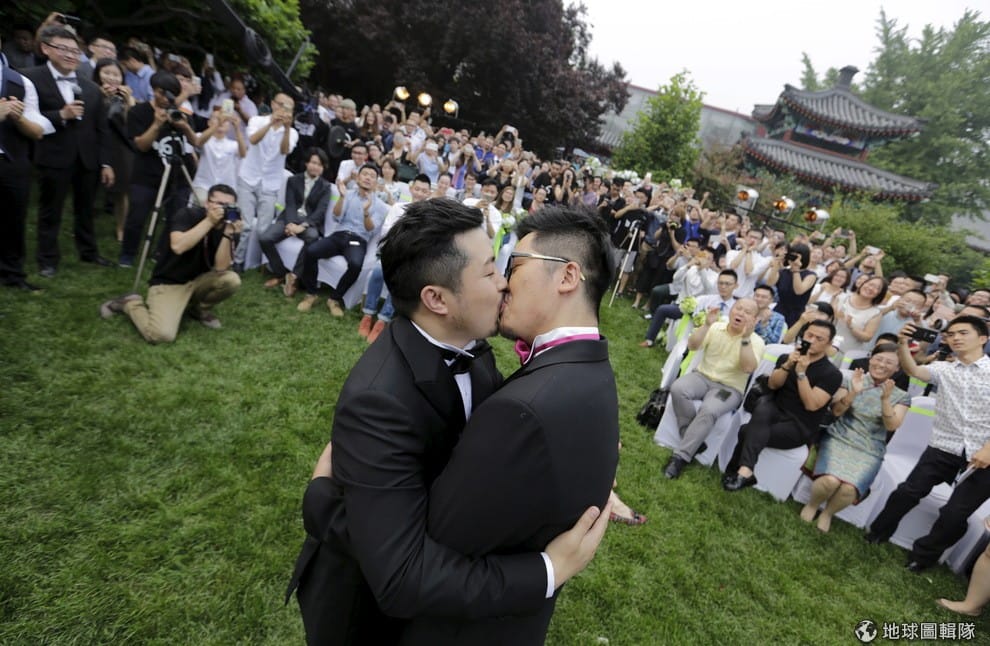 中國一對同志伴侶在 200多名親友的見證下,完成終身大事。雖然目前中國同性婚姻尚未合法,但不少伴侶仍舉辦婚禮,向各界昭告他們的愛情。