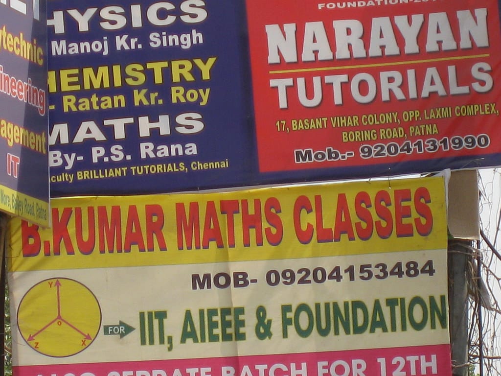在印度,到處都可以看到補習班的廣告,補習班產業在印度年年成長,它們用各式各樣的宣傳標語吸引學生。