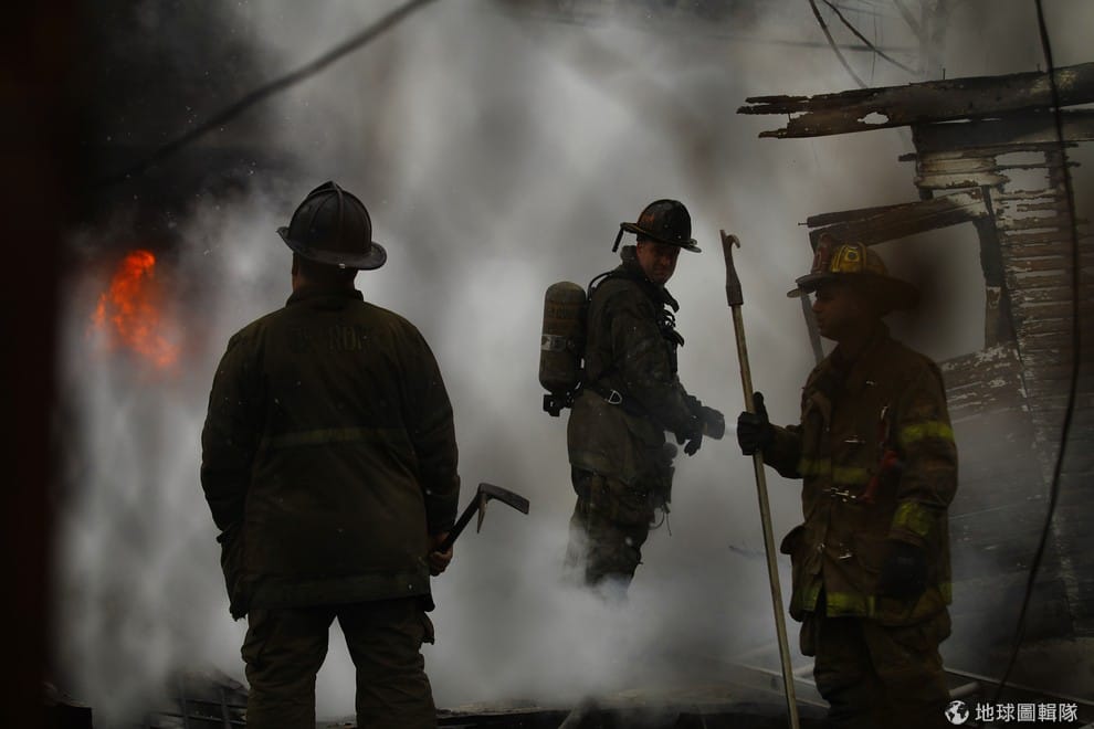 圖拍攝於美國底特律(Detroit),當時消防員一邊試著要把火勢控制在小屋內,一邊調查起火源。