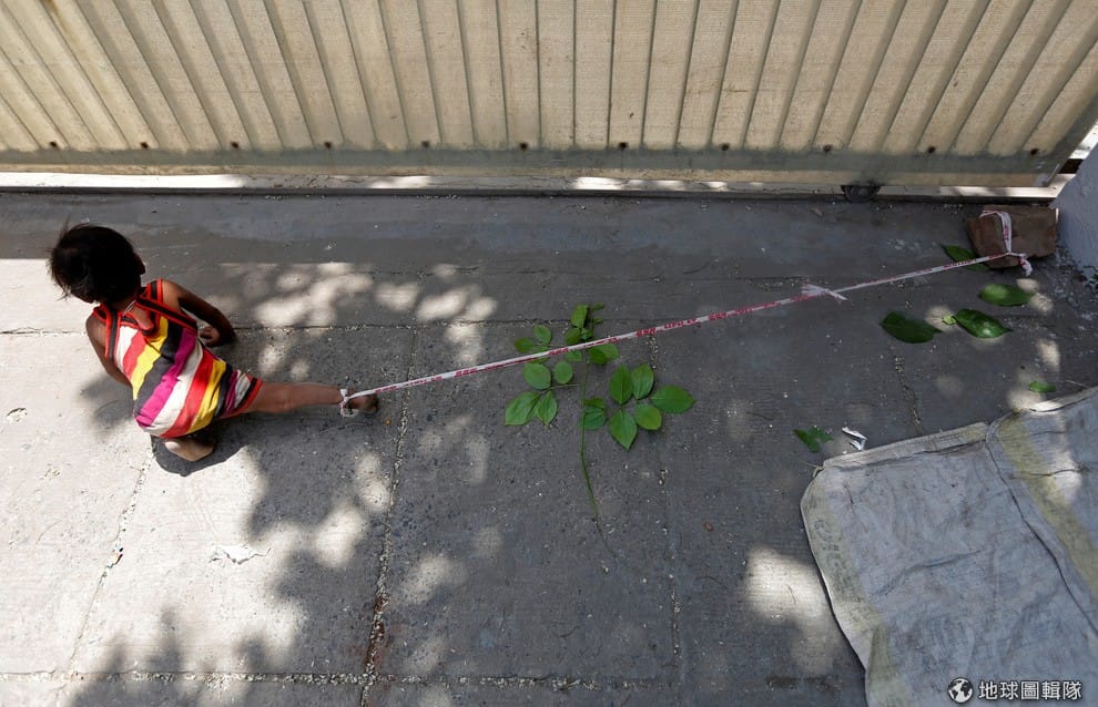 「我綁住她是為了避免她走到馬路上,我的小兒子才 3歲半,根本沒辦法照顧她,」23歲的卡樂魯說道:「這個地方的車子很多,我別無選擇,我這麼做是為了她的安全。」