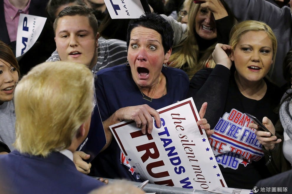 對有些人來說,照片中的女人看起來像是碰到什麼搖滾巨星,對其他人來說,她的表情看起來超級嚇人。事實上,羅伊(Robin Roy)只不過是美國準總統川普(Donald Trump)的其中一個死忠支持者。