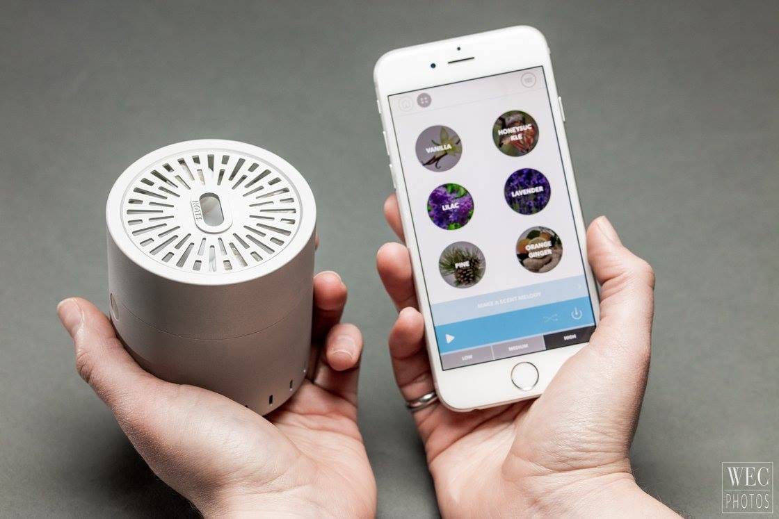 圖為美國哈佛大學愛德華茲教授發明的味道播放器Cyrano,使用者可以下載app oNotes後,安排不同味道輪番上場,來一趟嗅覺之旅。