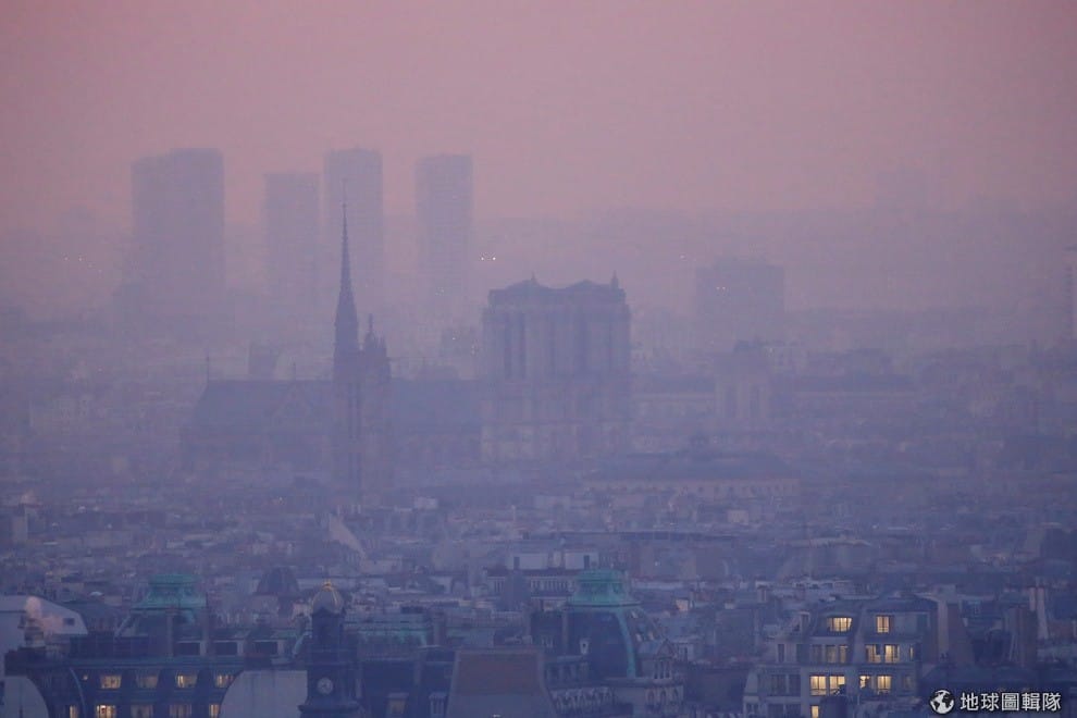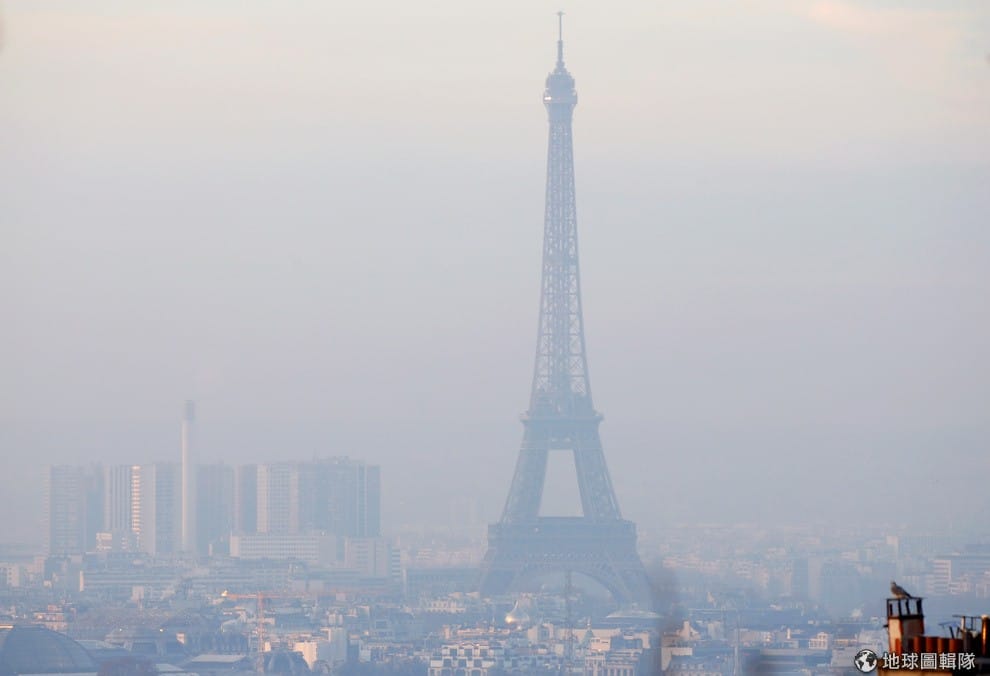 圖為上周巴黎市景,霧濛濛的情況讓整個城市的能見度非常低,巴黎政府也要小孩、孕婦不要隨意外出。