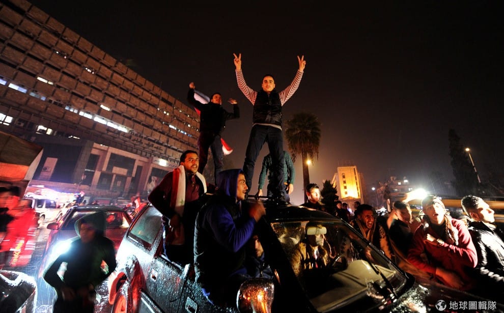 東阿勒坡城被收復後,阿薩德政權下的西阿勒坡城人民也走上街頭慶祝。