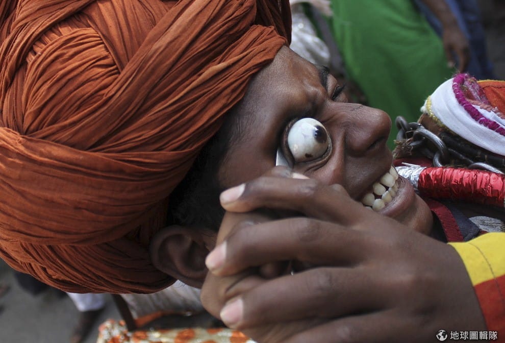 在印度連續 6天的「烏爾斯節」(Urs festival)上,一位穆斯林信徒正在以表演特技的方式,紀念伊斯蘭教蘇菲派的聖人奇斯提(Khwaja Moinuddin Chishti)。