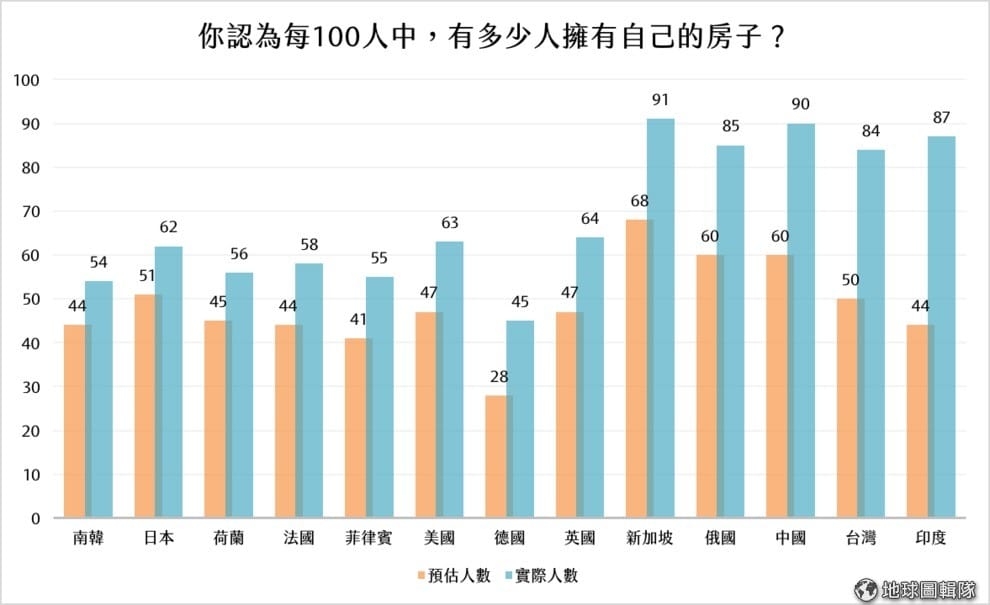 雖然很常聽到各國人民越來越買不起房子的新聞,但幾乎所有國家的人民都錯估了人們實際擁有房地產的狀況。