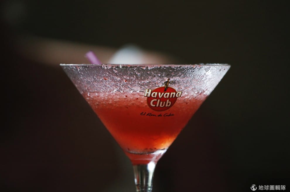圖為以蘭姆酒為基底,調出的德貴麗(Daiquirí)雞尾酒。杯身上的「哈瓦那俱樂部」(Havana Club)是古巴最出名的蘭姆酒品牌。