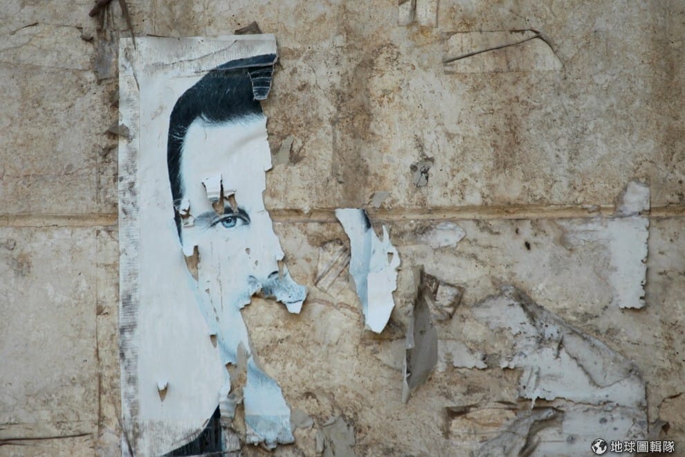 圖為敘利亞總統阿薩德肖像的海報。這場內戰是源於對阿薩德獨裁統治的不滿。