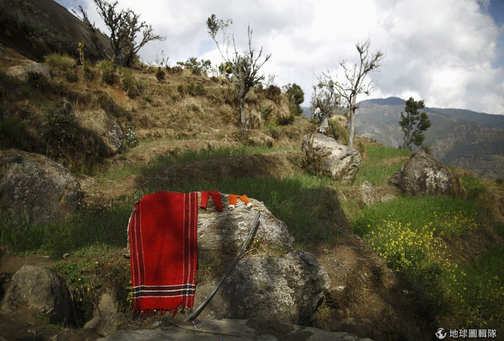一條洗好的布巾被掛在石頭上晾乾。許多尼泊爾女孩在和《衛報》談起月經禁忌時,也會提到自己曾經打破什麼禁忌,卻一點事也沒有,這讓她們更無法理解禁忌存在的必要性。