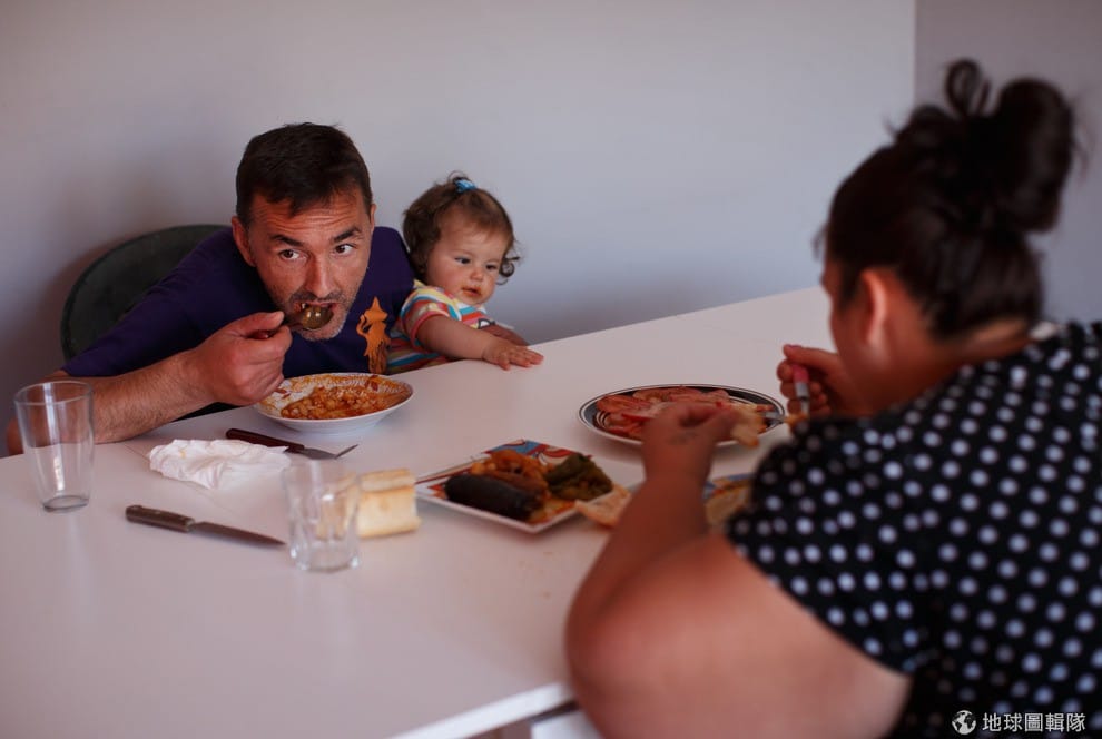 gettyimages39歲的畫家大衛,他手中抱著8個月大的小女兒,和坐在對面的30歲妻子3人正一起吃早餐,大衛因為付不起房租,因而帶著家人來到這座社區。