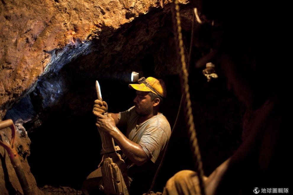 一名礦工進入非法礦坑準備採礦。目前全世界只有約 16萬噸的黃金被開採出來(數量大概能裝滿兩座奧林匹克標準游泳池),但根據世界黃金協會統計,這大概佔全世界四分之三的藏金地的資源已經耗盡,近年也很少發現新的採礦點。