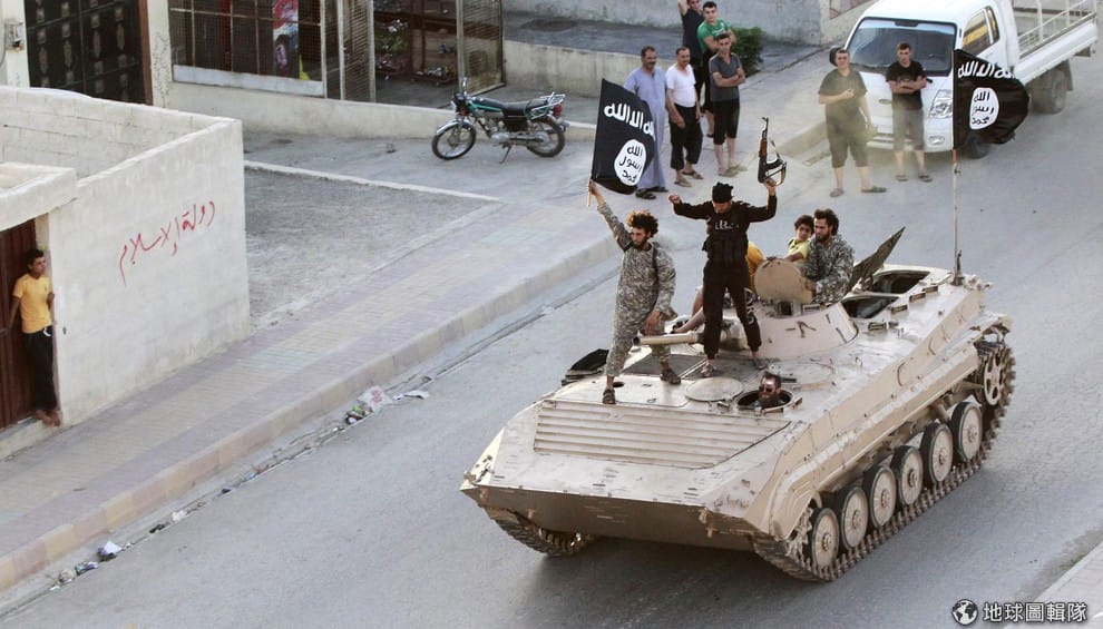 網友al jazeera圖為 2014年,伊斯蘭國成員上街遊行的畫面。除了反政府軍,潛伏在敘利亞的伊斯蘭國也是很大的問題。