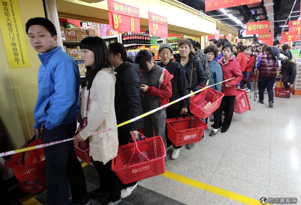 2011年,北京民眾在超市裡大排長龍,搶購添加碘的食鹽好對抗輻射效應。當時日本福島因為大地震引發海嘯,造成核電廠輻射外洩,鄰近國家擔心受該事故影響。