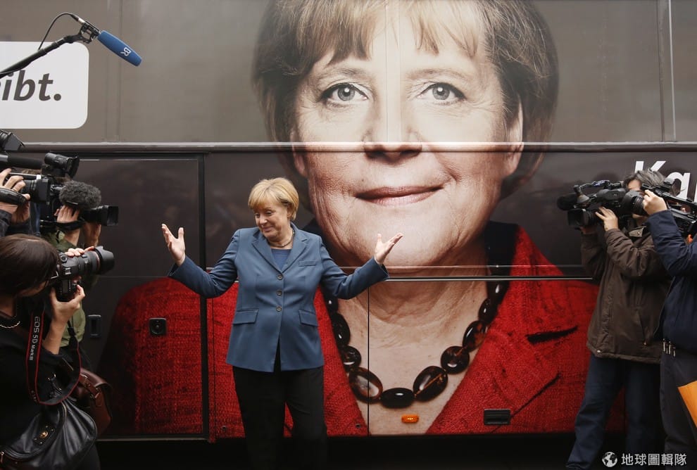 網友Tri Nguyen德國總理梅克爾在 2016年11月宣布角逐 2017年的德國總理大選,她若是再次當選,將成為德國戰後任期最長的總理。圖為 2013年梅克爾和她的競選巴士一同接受媒體拍照,當時她剛當選為第三任德國總理。