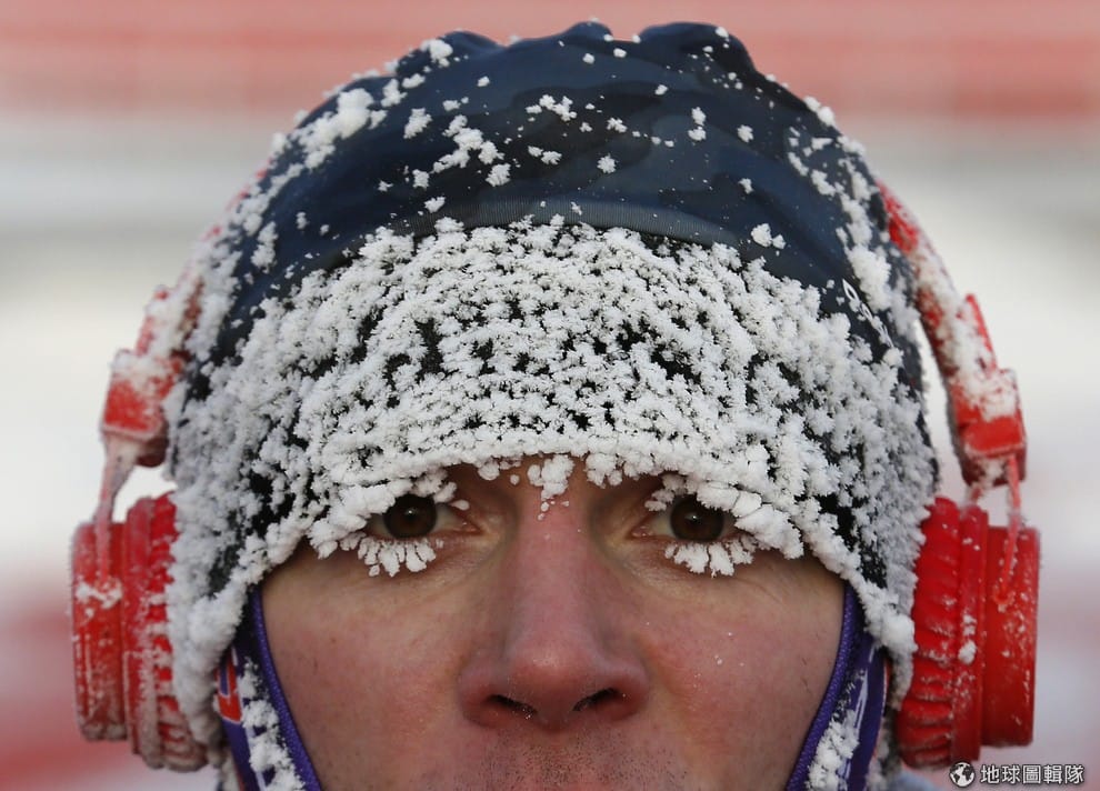 圖拍攝於本月 7號,一名俄羅斯馬拉松選手剛跑完業餘半馬馬拉松競賽,頭上滿佈著白霜。