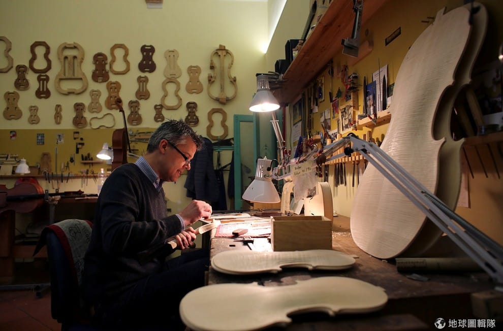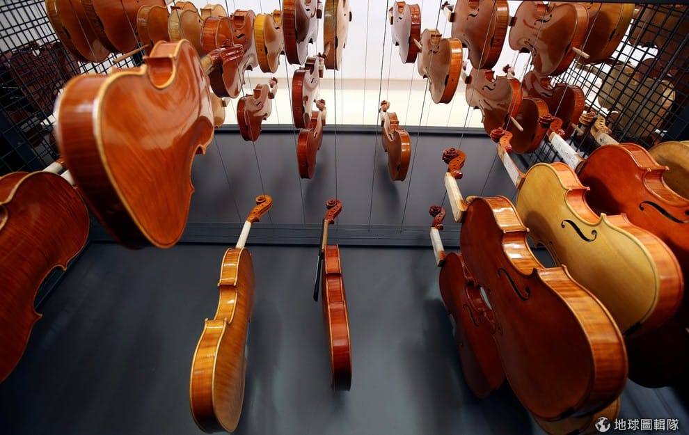 義大利「安東尼奧‧史特拉瓦第研究所」(Antonio Stradivari institute)的研究室裡,一把把學生做的小提琴懸掛在空中風乾。
