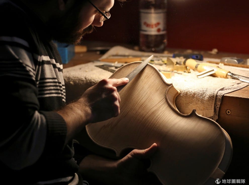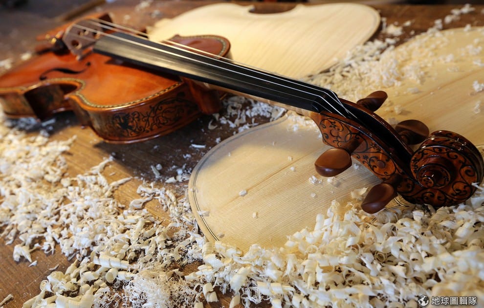路透社完成的小提琴被擺放在堆滿木屑的工作檯上,每把手工小提琴的背後,都有著我們看不到的無數心血呢!