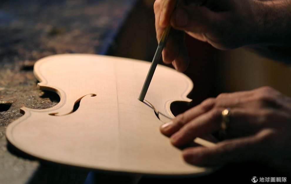 路透社製琴師塔拉布吉仔細地刻製出小提琴上的音孔。音孔是為了讓共鳴板可以更自由地振動,以加強音色,也使得樂器內部的振動能夠傳出樂器外,音孔越小,音色越明亮。