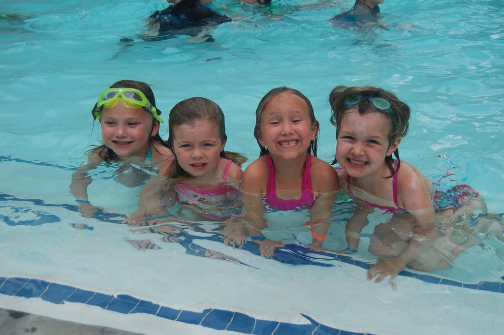 孩子們開心地享受游泳課,在瑞士現行法規下,游泳課是義務教育的一環。