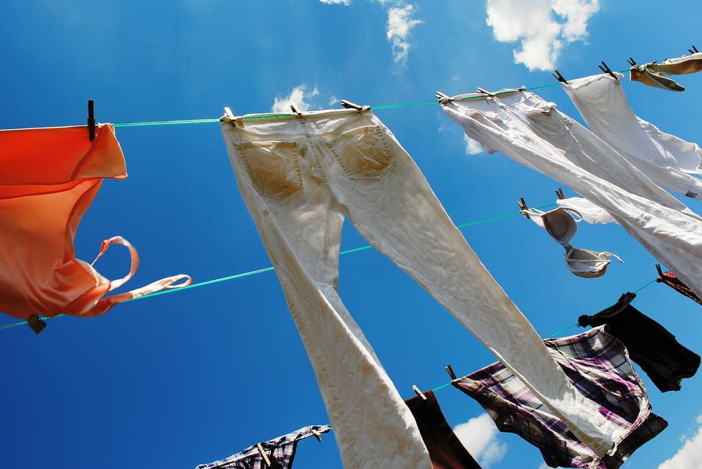 除了晾衣服,曬衣架也被人們拿來做各種用途,有時也會充當小孩子的遊樂場。