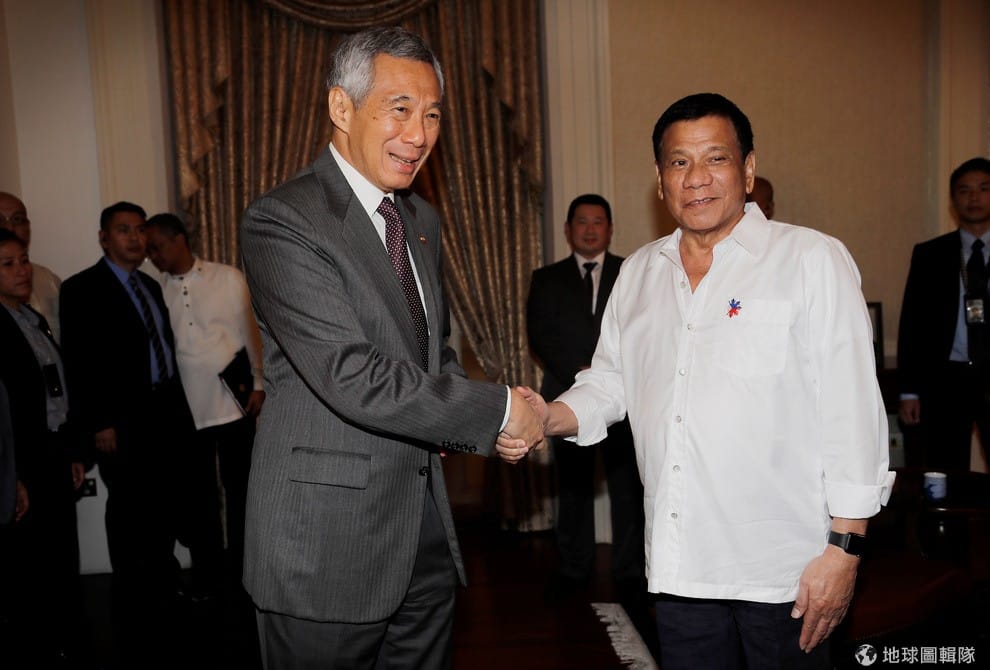 2016年12月,新加坡總理李顯龍(左)招待前來星國參訪的菲律賓總統杜特蒂(右),兩人在總理府留下了這張照片。