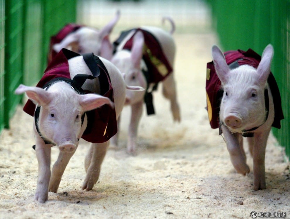 圖為小豬賽跑的畫面。由於豬在瑞士有「幸運」的意思,因此每到新年,有些城鎮也會舉辦小豬賽跑,頗有「幸福衝向新的一年」的意味在。