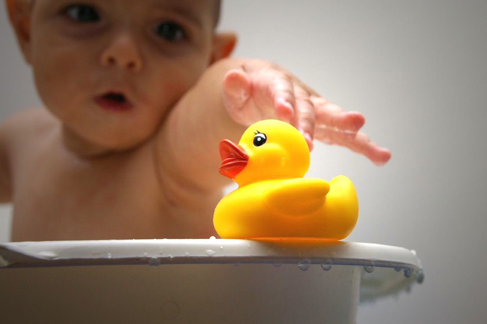除了蘇菲長頸鹿,孩子們喜歡一邊洗澡一邊玩的玩具也要小心,而黃色小鴨玩具首當其衝。