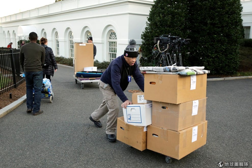 19號,在美國總統歐巴馬任期的最後一天,白宮的工作人員正忙著收拾歐巴馬一家在白宮的各種家當。