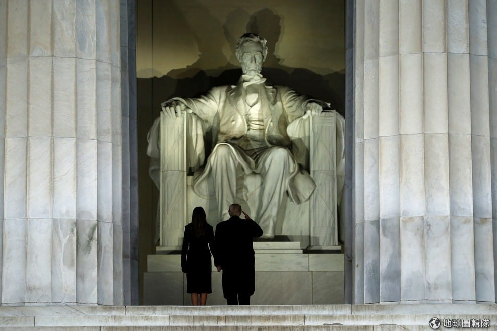 路透社川普與妻子梅蘭妮在 19號前往林肯紀念堂,並向林肯雕像致敬。