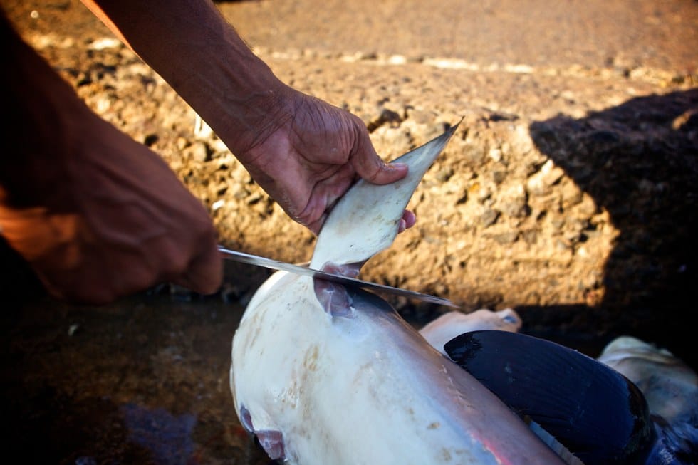 斯里蘭卡一位漁民正在將鯊魚鰭割下。 取自The Dodo
